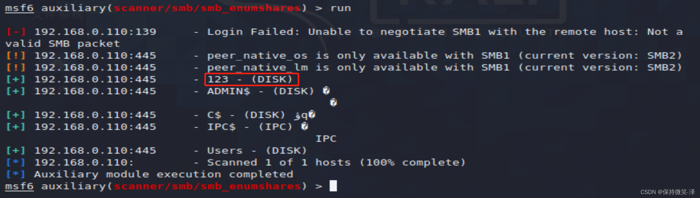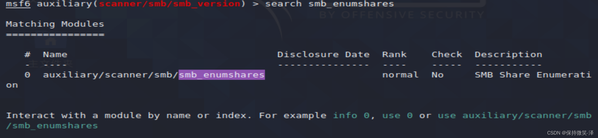 3.use auxiliary/scanner/smb/smb_enumshares