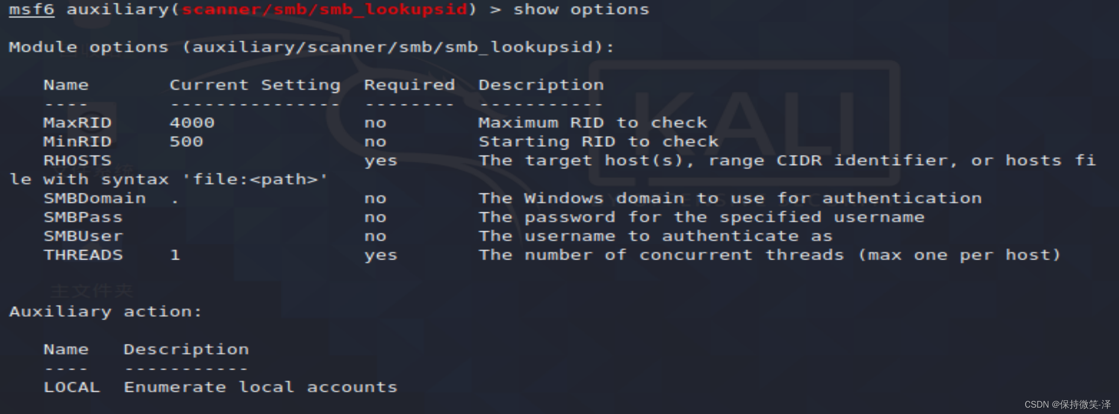 3.use auxiliary/scanner/smb/smb_lookupsid 使用模块