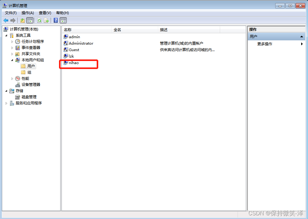 1.我们在win7系统里新建一个用户nihao