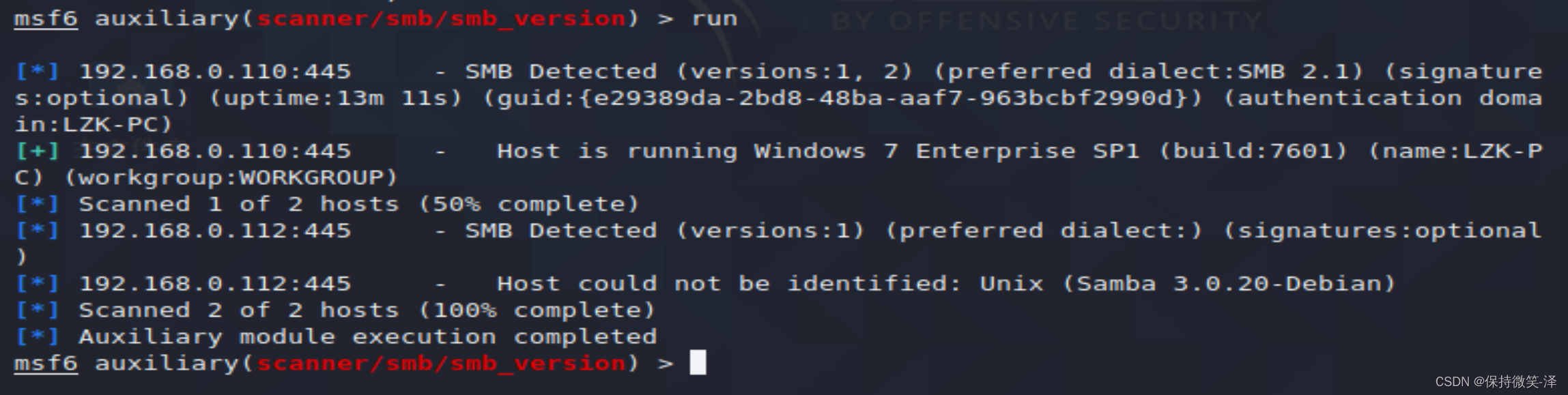 use auxiliary/scanner/smb/smb_version