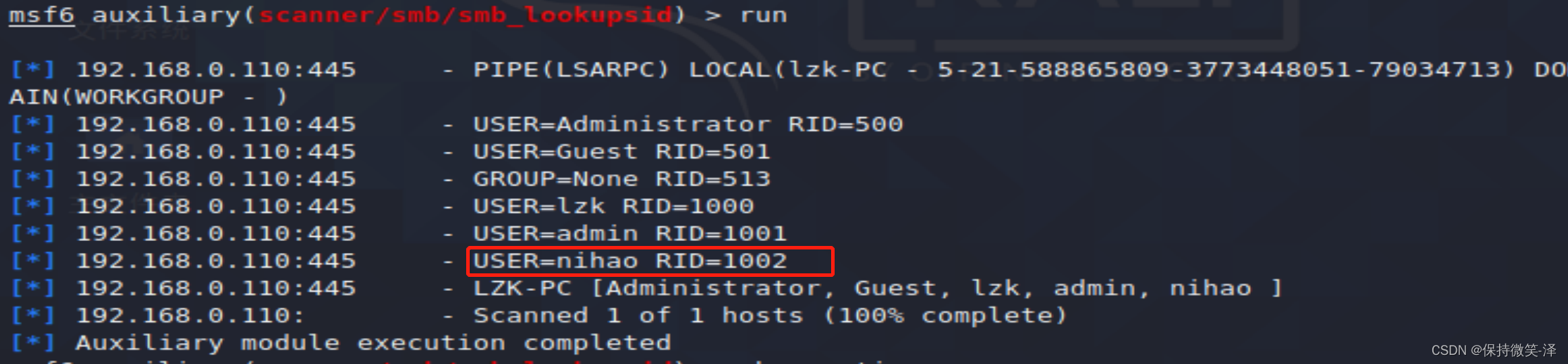 编辑 3.使用smb_lookupsid扫描系统用户信息(SID枚举)