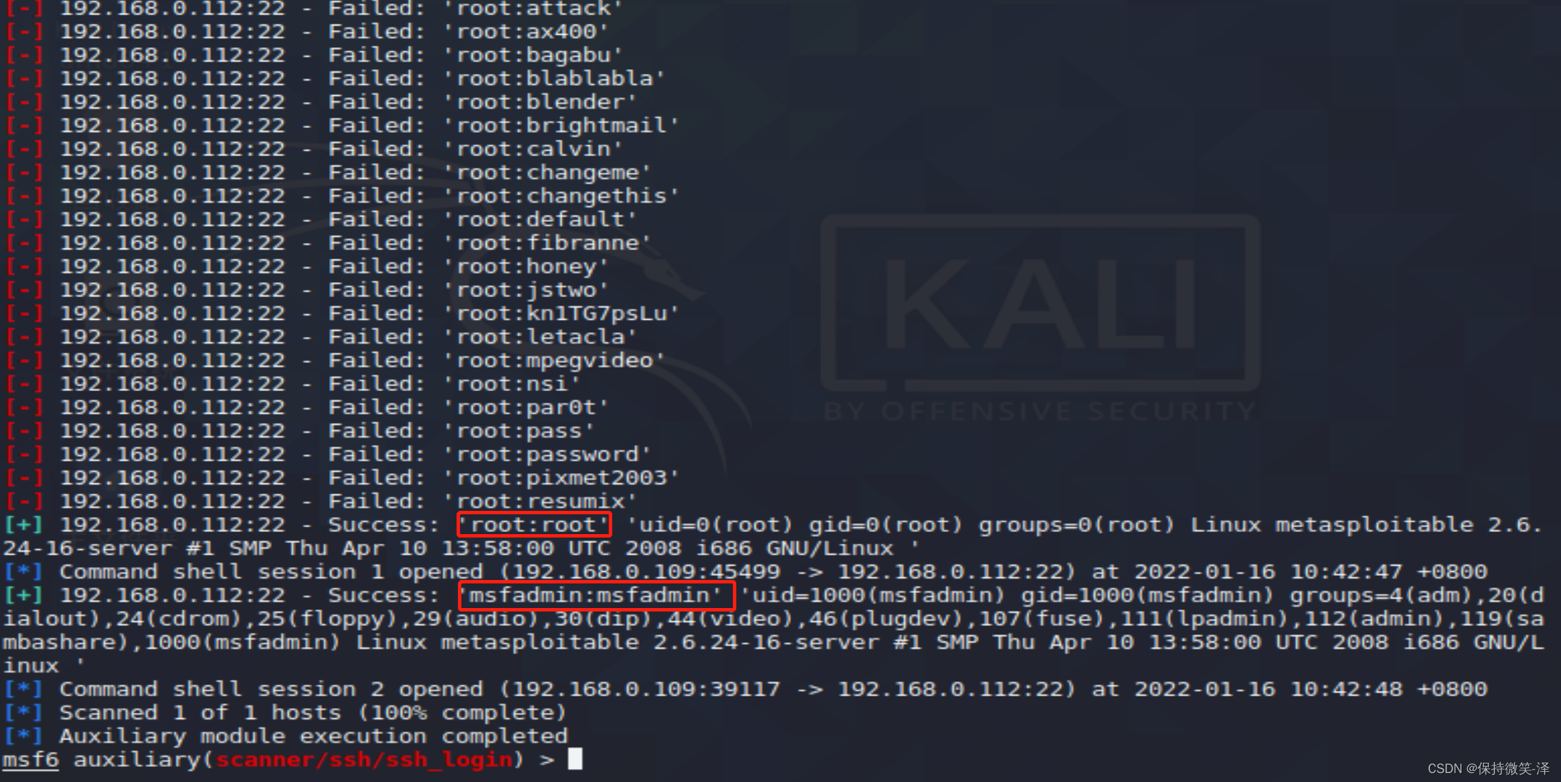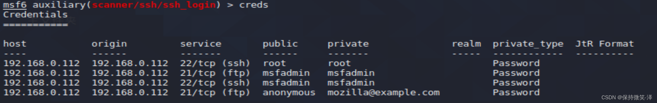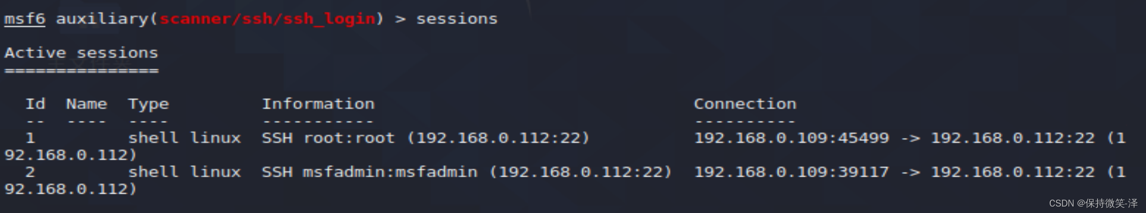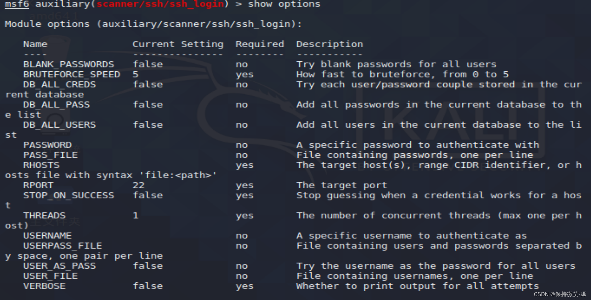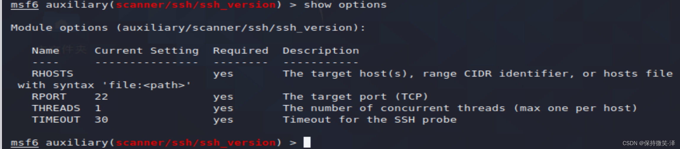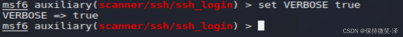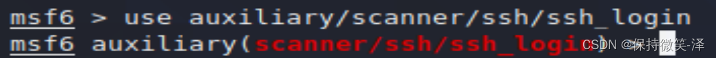 2.使用模块use auxiliary/scanner/ssh/ssh_login