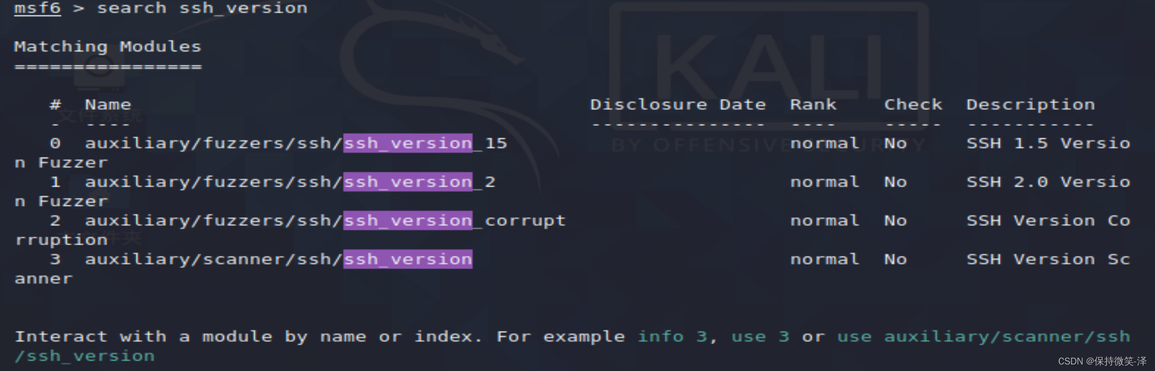 2.use auxiliary/scanner/ssh/ssh_version