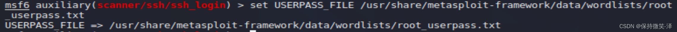 set USERPASS_FILE /usr/share/metasploit-framework/data/wordlists/root_userpass.txt