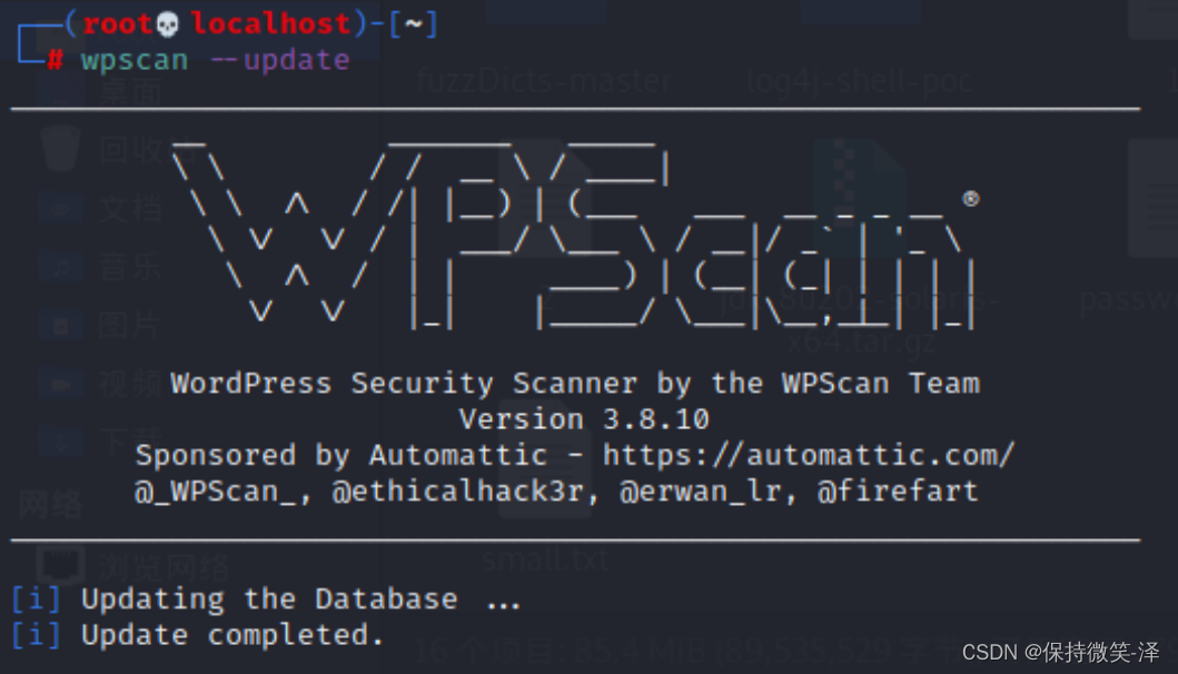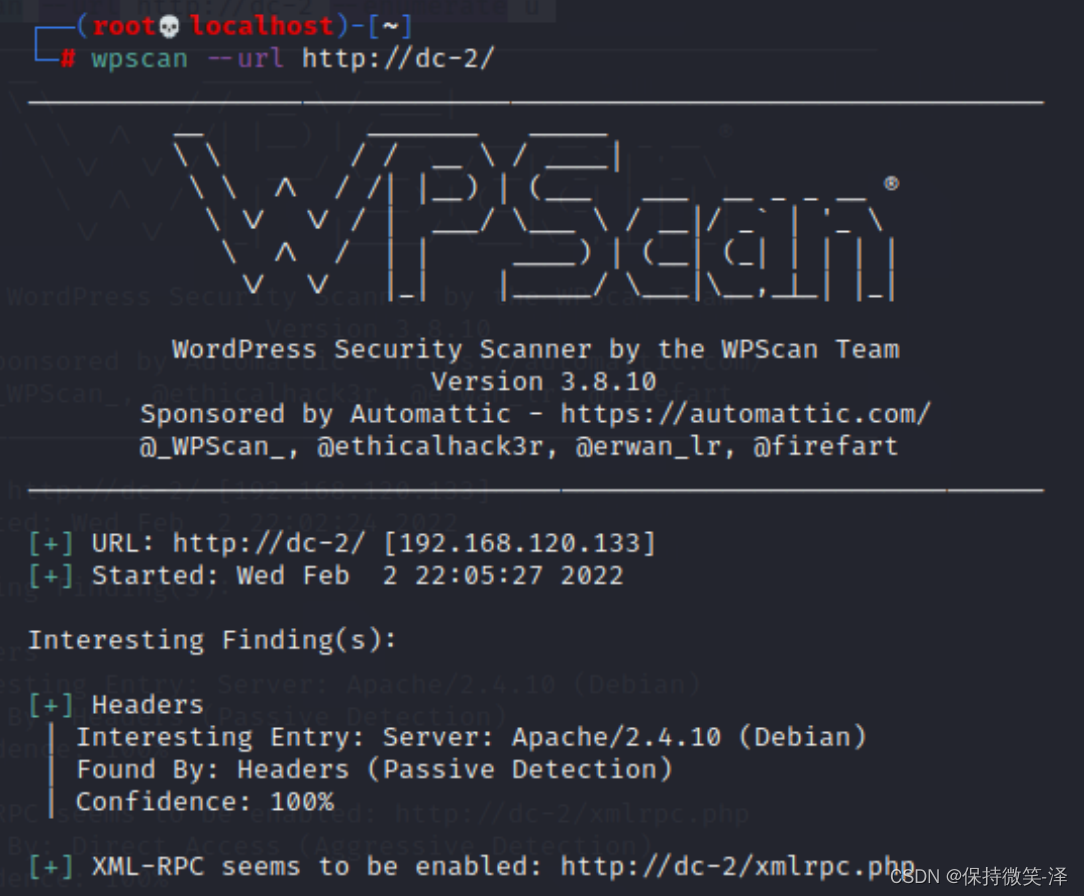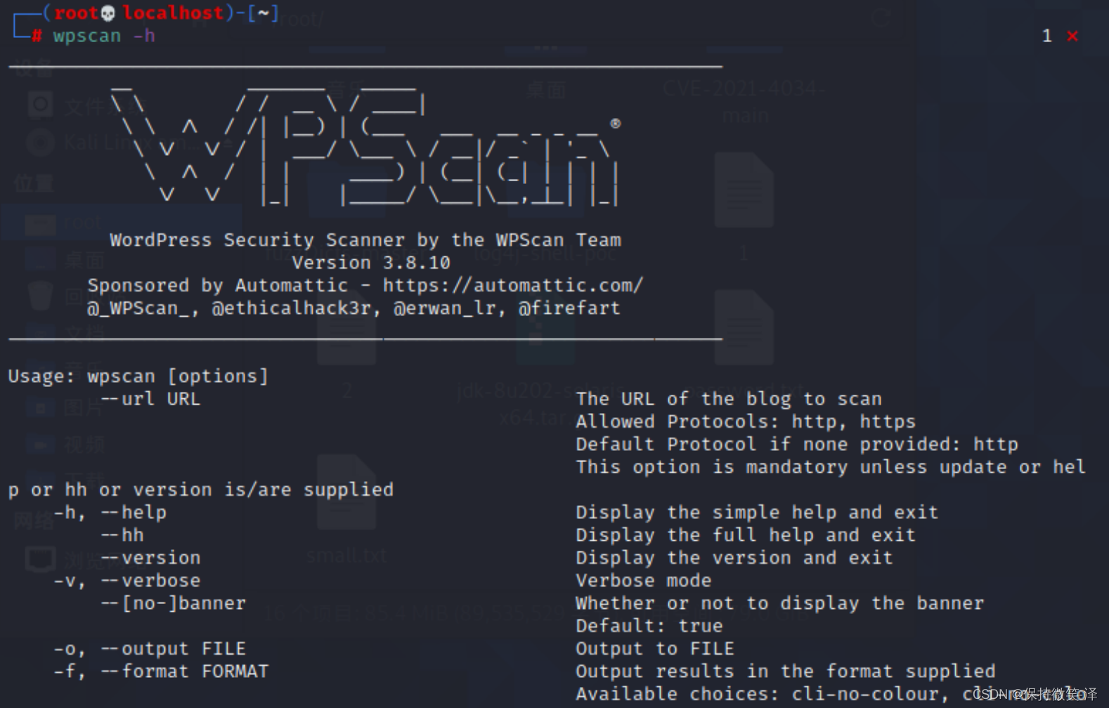WPScan是Kali Linux默认自带的一款漏洞扫描工具,它可以全面检查wp网站的漏洞,从而能够及时应对修补漏洞避免被黑掉的危险。同时还可以实现对未加防护的Wordpress站点暴力破解用户名密码。