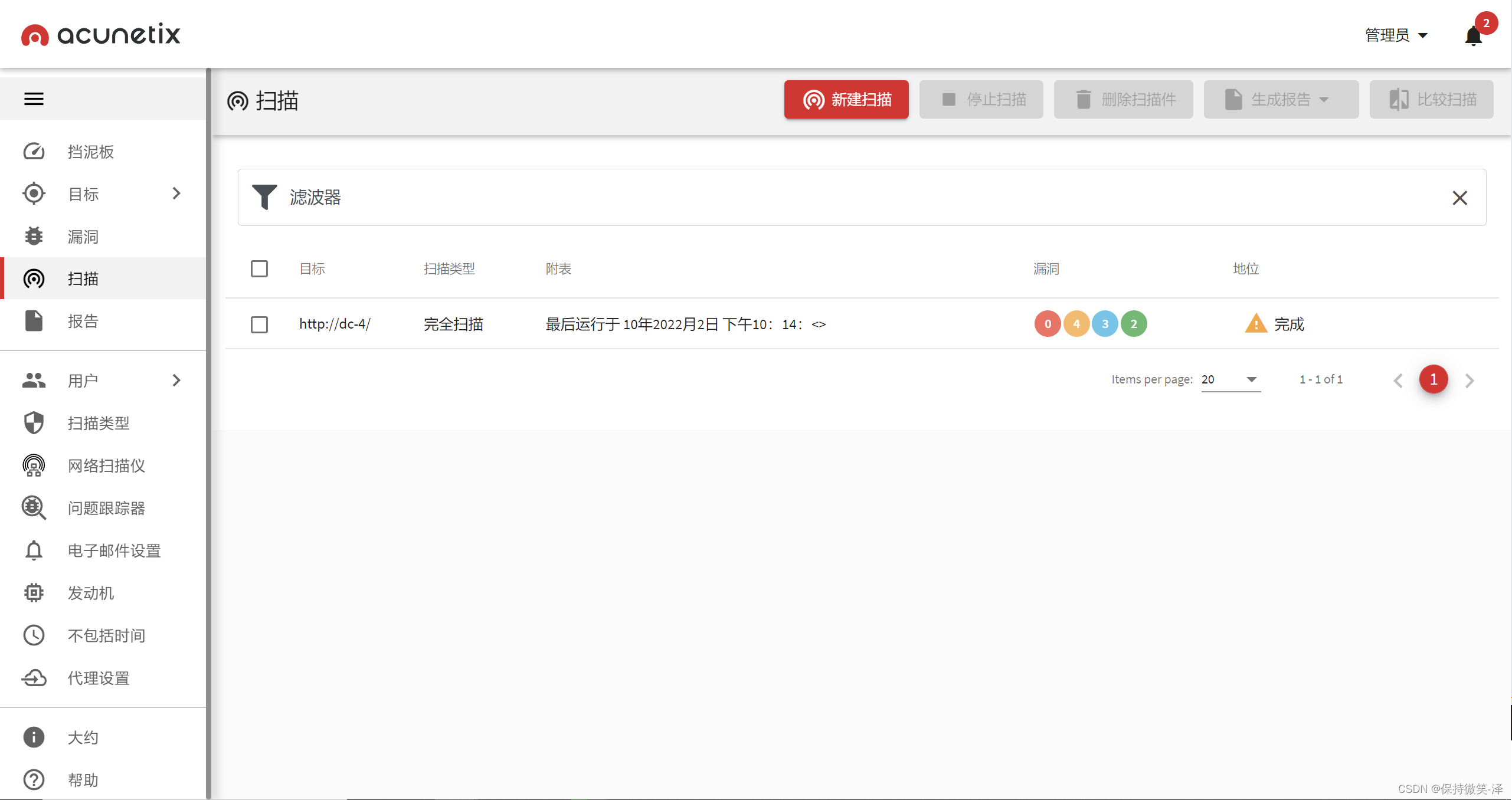 点击扫描,点击新建扫描,输入网址或者IP就可以开始扫描了。这里以dc-4靶场为例。