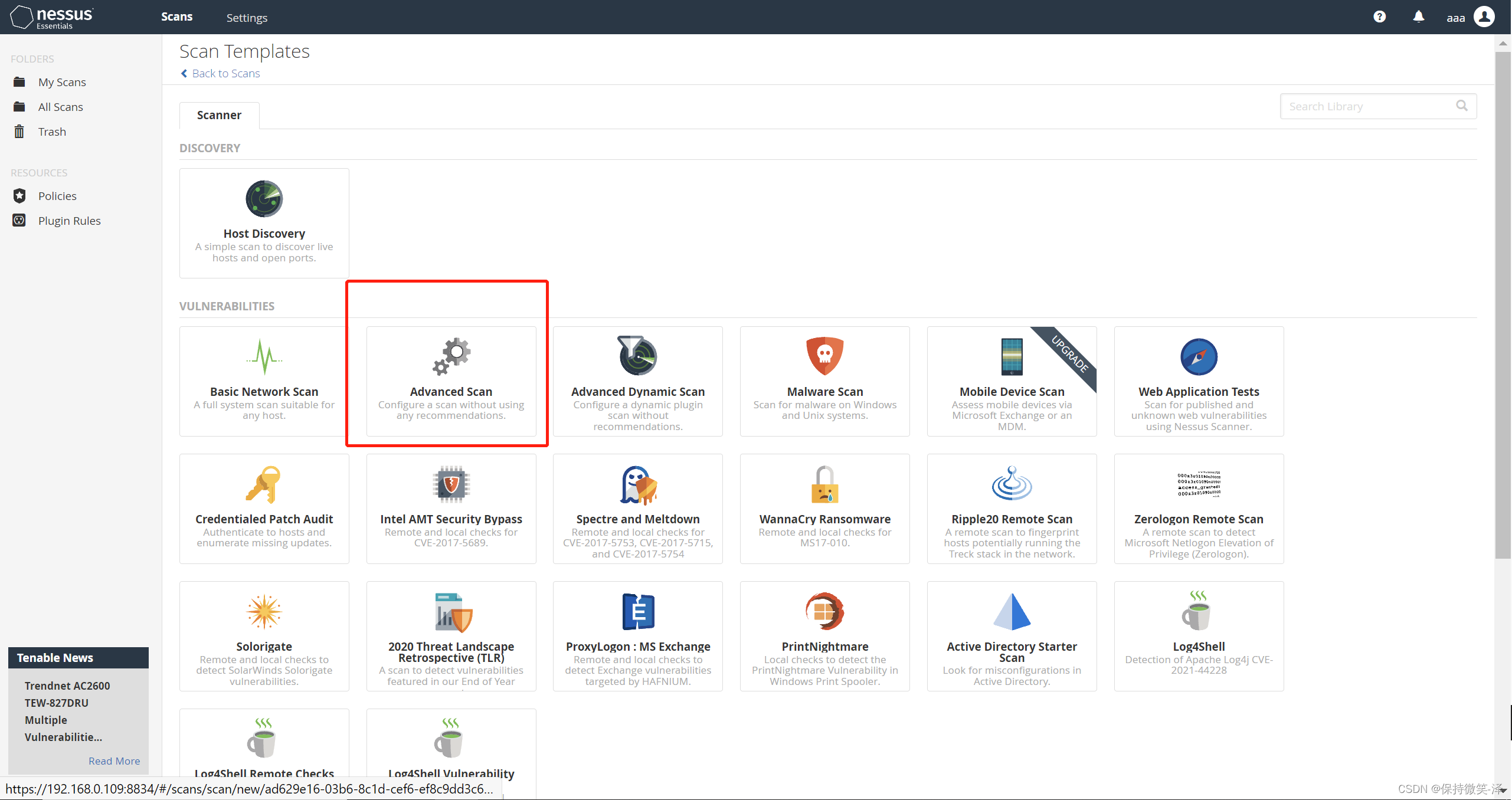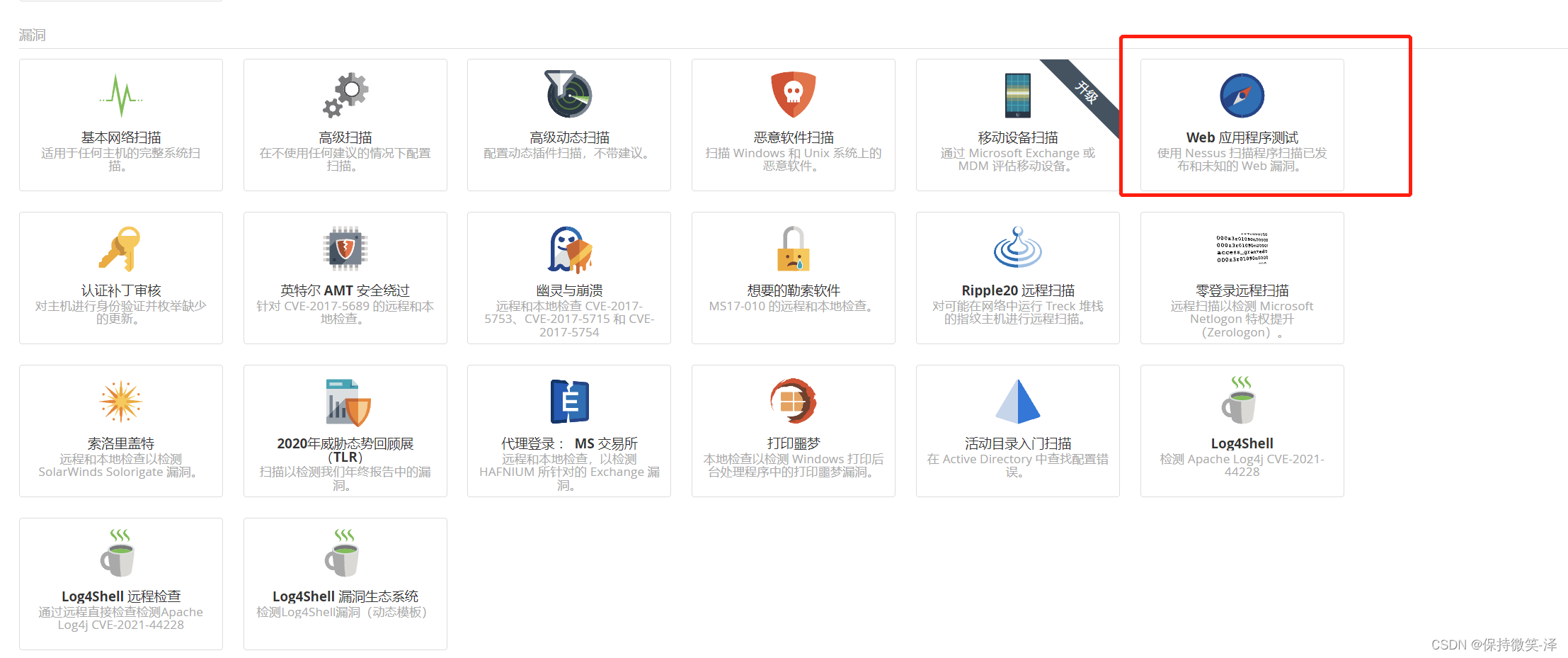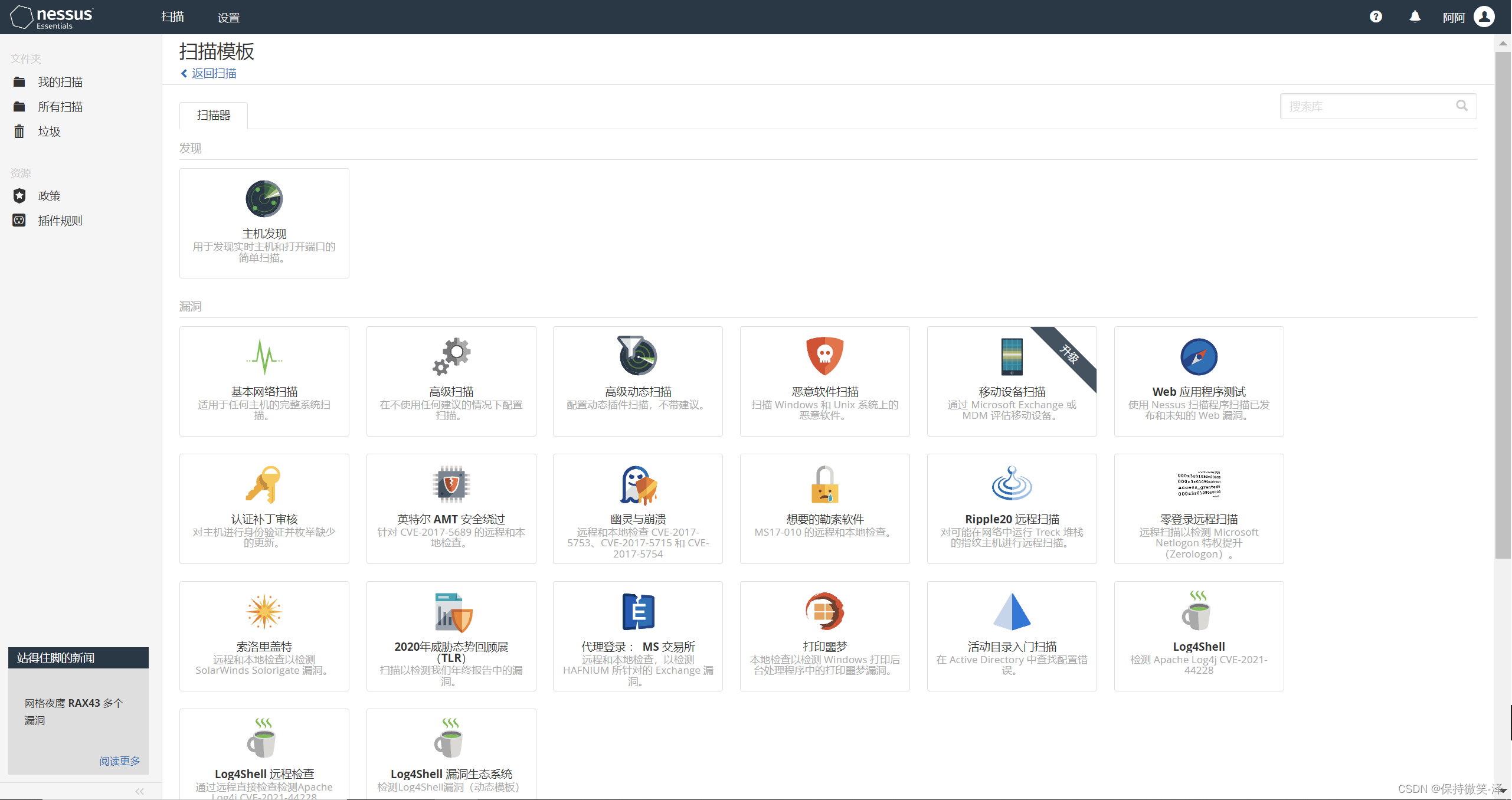 点击-新建扫描,我们可以看到有很多功能模块可以去使用。