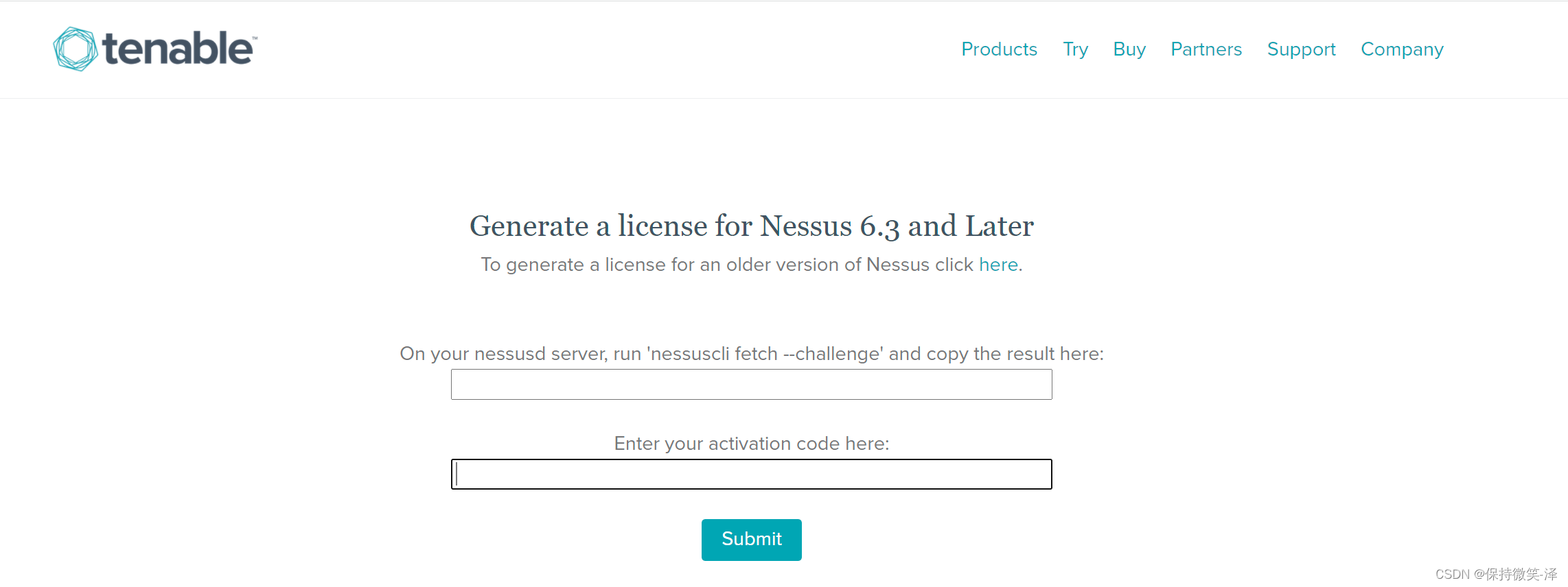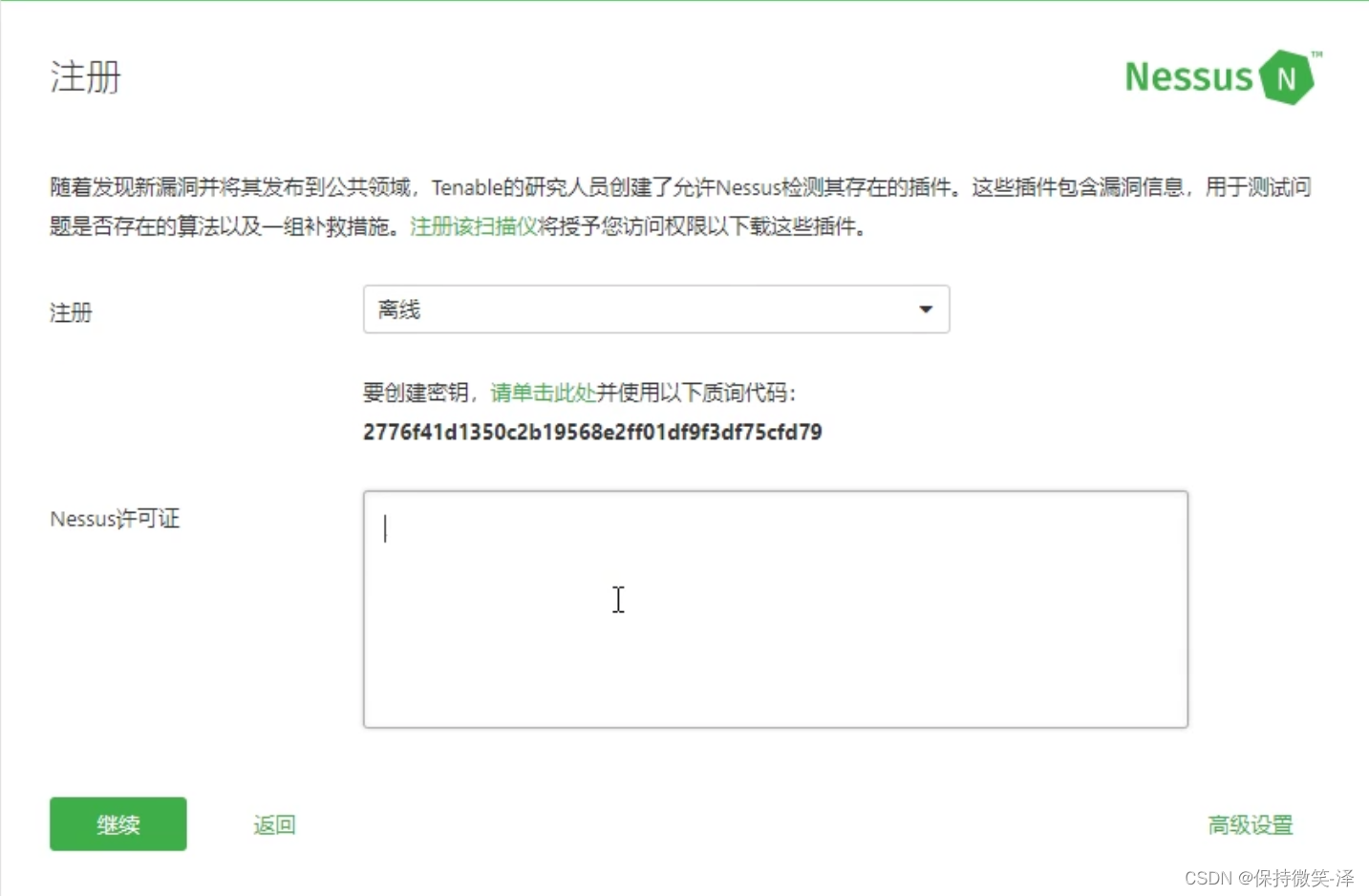 此时需要我们输入许可证。打开这个网址: Nessus Essentials 漏洞扫描程序 | Tenable®https://zh-cn.tenable.com/products/nessus/nessus-essentials?tns_redirect=true