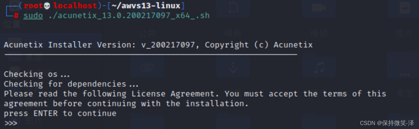 运行 acunetix_13.0.200217097_x64_.sh 脚本