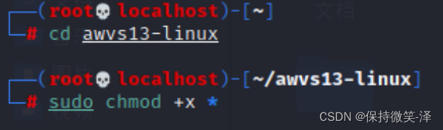 进入awvs13-linux 目录,为该目录下的所有文件赋予执行权限