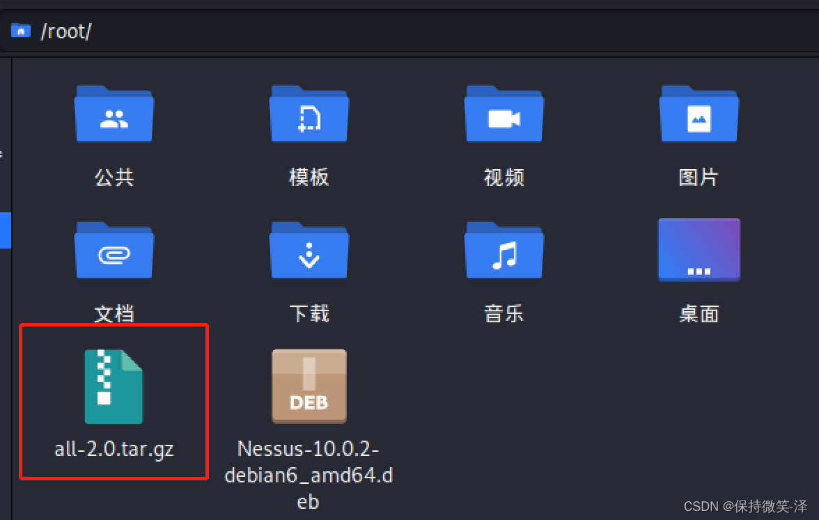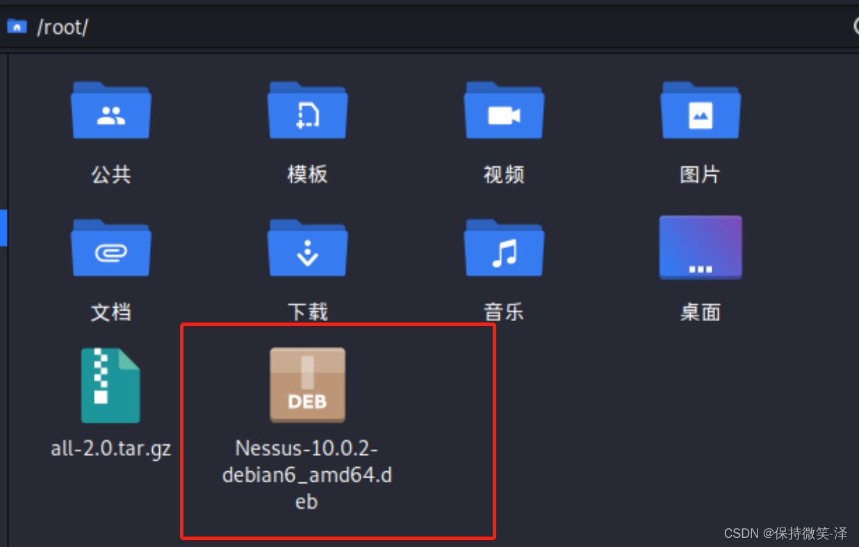 点击下载,然后将Nessus-10.0.2-debian6_amd64.deb包复制到kali系统里的root目录下。如图所示。