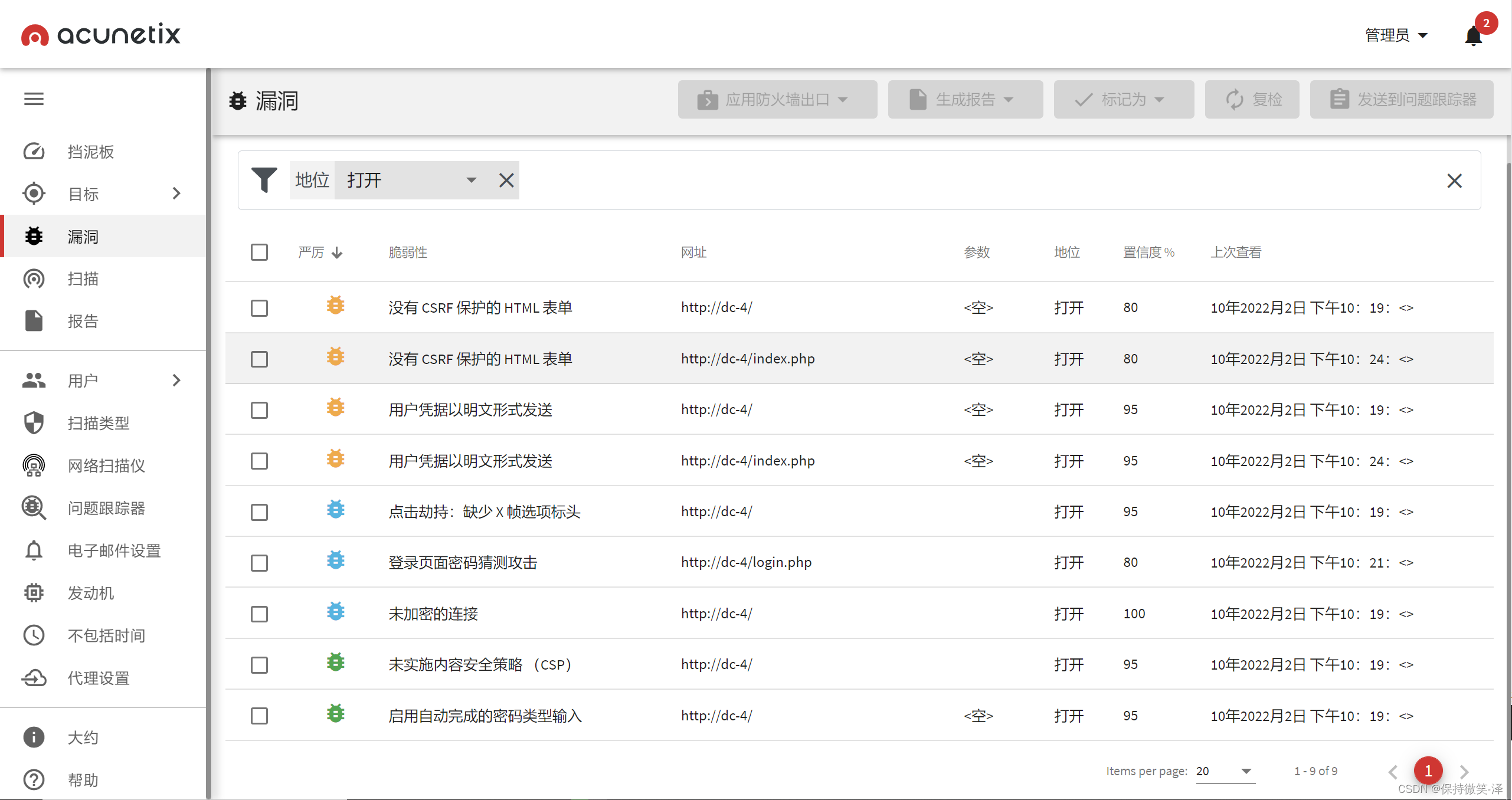 扫描完成后,我们打开漏洞,可以看到扫出来的漏洞。
