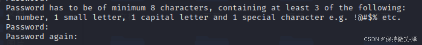 注意:密码必须包含一个小写字母,一个大写字母,中文数字和特殊符号。编辑