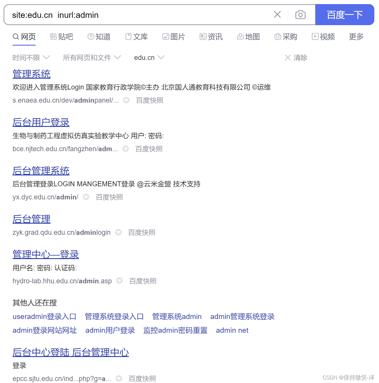 3.搜索网址中包含 site:eu.cn inurl:admin 字符的网站: site:edu.cn inurl:admin