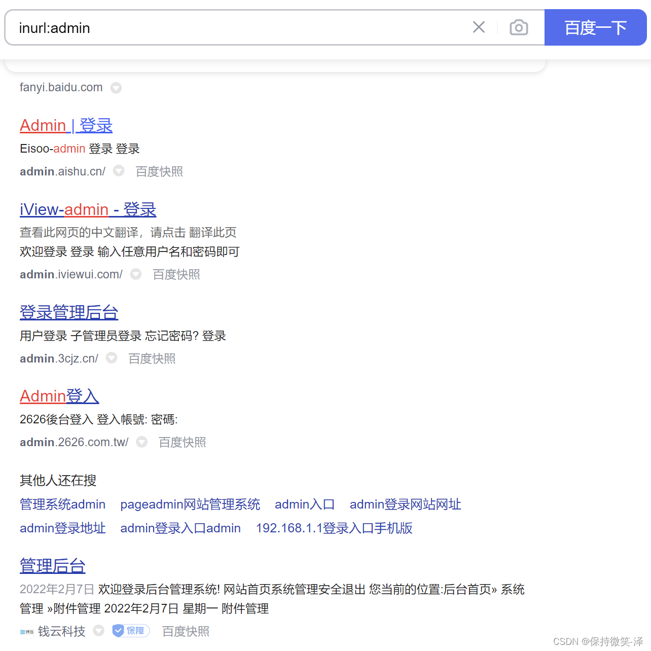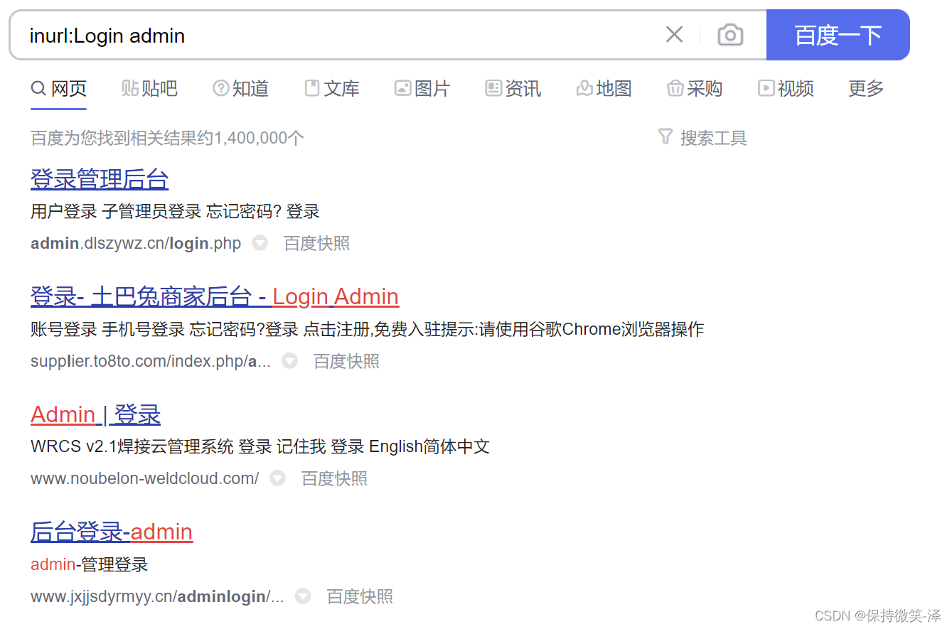 1.搜索网址中包含 admin 字符的网站: inurl:admin