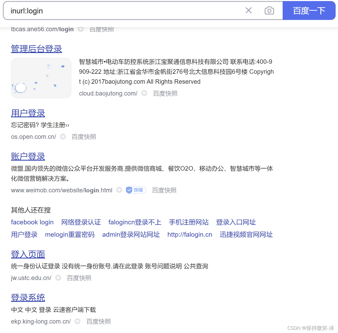 2.搜索网址中包含 login 字符的网站: inurl:login
