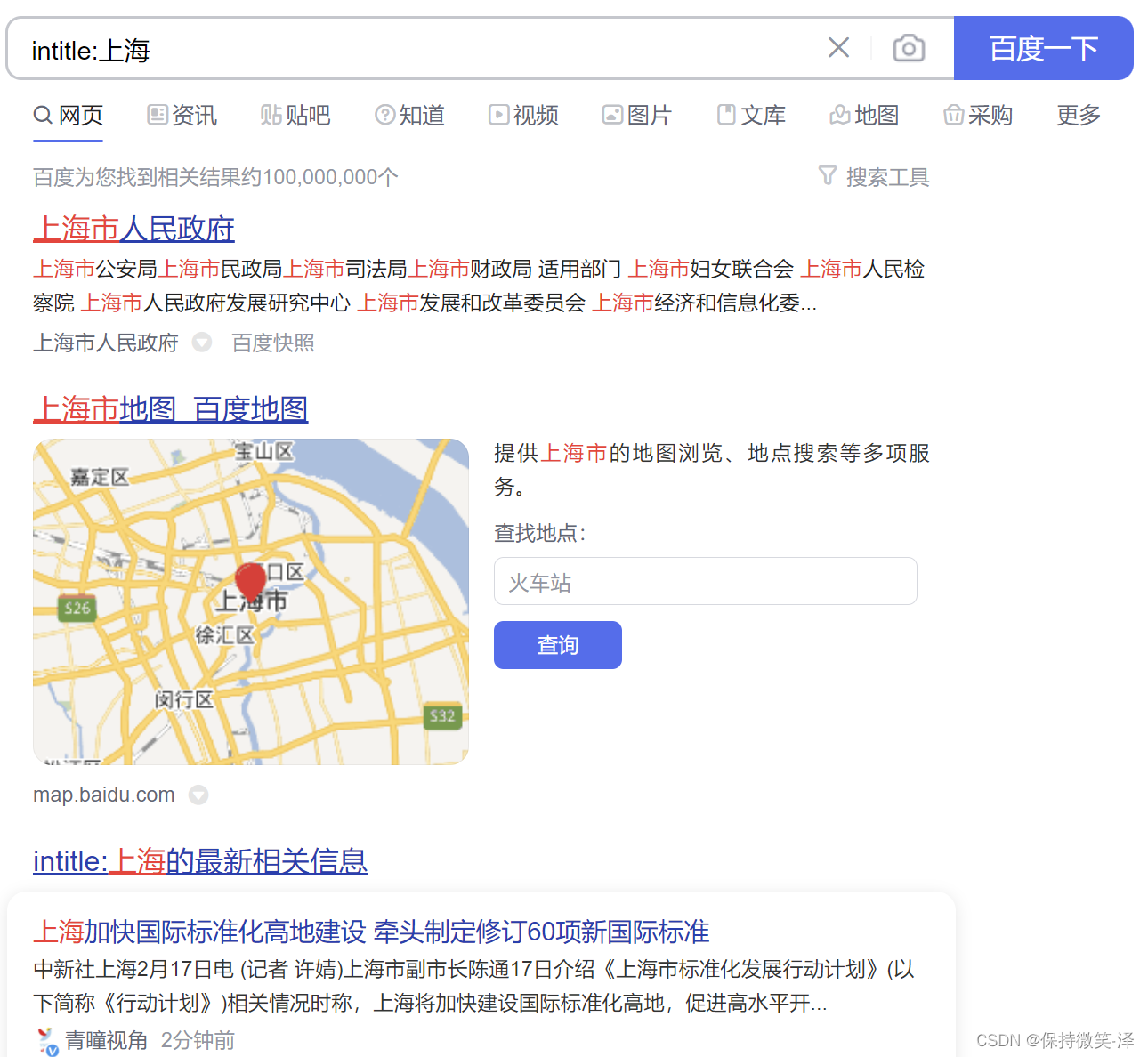 5.搜索标题中必须包含 “上海” 的网站: intitle:上海
