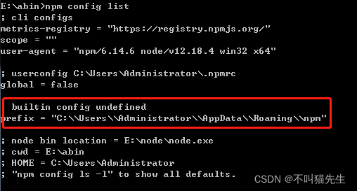 我的路径为C:\Users\Administrator\AppData\Roaming\npm