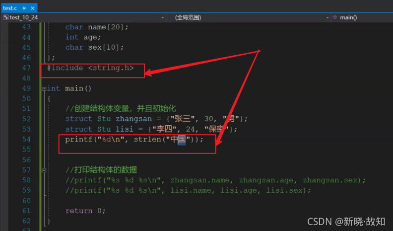 #include <stdio.h> #include <string.h> //代码3 //结构体类型的定义 struct Stu { //结构体的成员 char name[20]; int age; char sex[10]; }; int main() { //创建结构体变量,并且初始化 struct Stu zhangsan = {"张三", 30, "男"}; struct Stu lisi = {"李四", 24, "保密"}; //->这个操作符 struct Stu * pl = &lisi; printf("%s %d %s\n", (*pl).name, (*pl).age, (*pl).sex); printf("%s %d %s\n", pl->name, pl->age, pl->sex); //打印结构体的数据 printf("%s %d %s\n", zhangsan.name, zhangsan.age, zhangsan.sex); printf("%s %d %s\n", lisi.name, lisi.age, lisi.sex); return 0; }