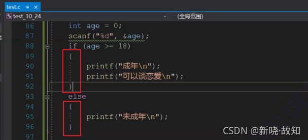 #include <stdio.h> int main() { int age = 0; scanf("%d", &age); if (age < 18) printf("少年\n"); else if (age >= 18 && age < 40) printf("青年\n"); else if (age >= 40 && age < 60) printf("壮年\n"); else if (age >= 60 && age < 90) printf("老年\n"); else printf("老寿星\n"); //代码块1 /*if (age >= 18) printf("成年\n"); else printf("未成年\n");*/ //代码块2 /*if (age >= 18) printf("成年\n");*/ return 0; }