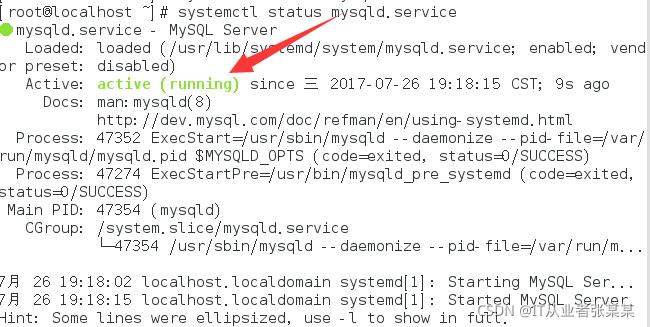 [root@localhost ~]# systemctl status mysqld.service • 1