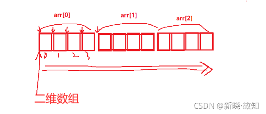 通过结果我们可以分析到,其实二维数组在内存中也是连续存储的!