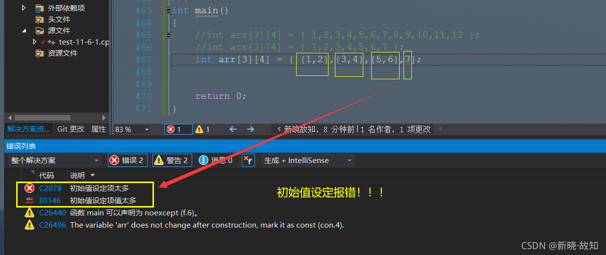 二维数组初始化举例: