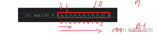 对于数组的使用我们之前介绍了一个操作符: [] ,下标引用操作符。它其实就数组访问的操作符。