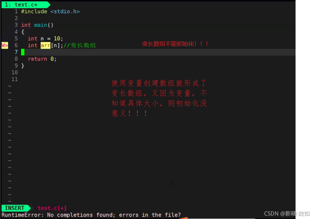 //代码1 int arr1[10]; //代码2 int count = 10; int arr2[count];//数组时候可以正常创建? //代码3 char arr3[10]; float arr4[1]; double arr5[20];