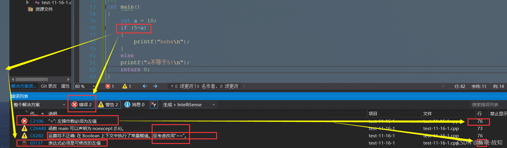 警告: 在编程的过程中== 和=不小心写错,导致的错误!