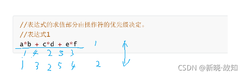 //表达式的求值部分由操作符的优先级决定。 //表达式1 a*b + c*d + e*f