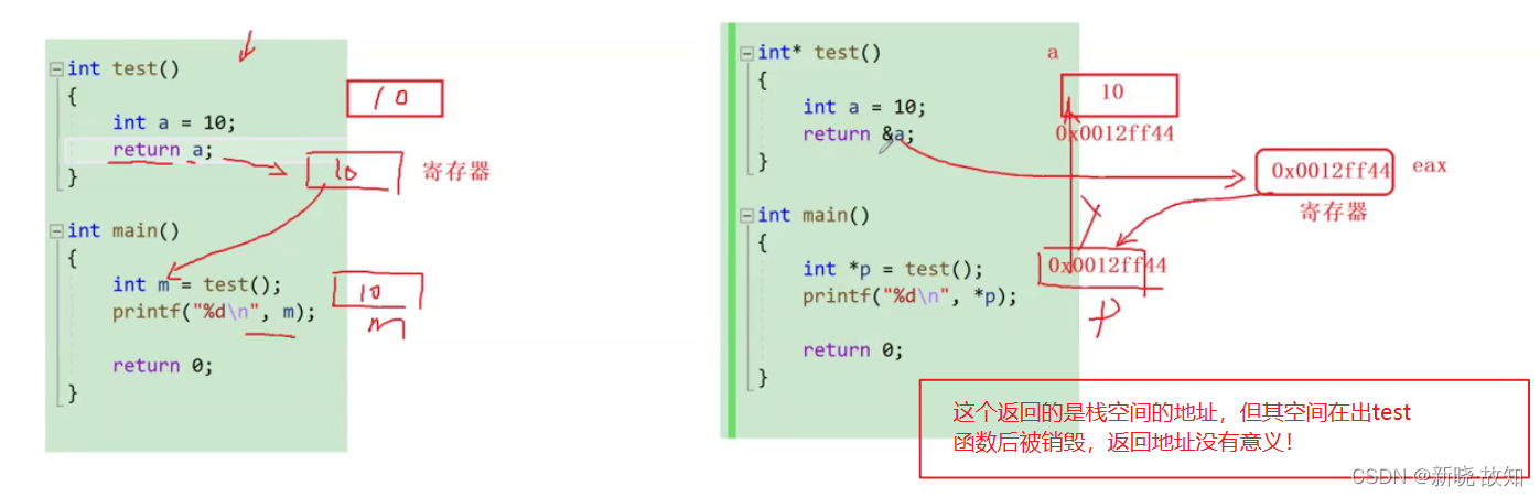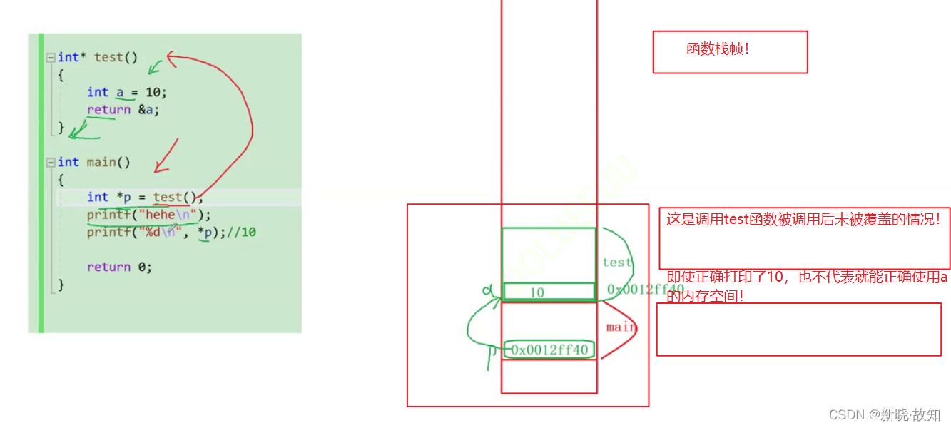 在栈上开辟的内存空间,自动创建自动销毁, 进入作用域创建,出作用域销毁,自己维护。而在堆区开辟的内存空间,需要指针进行维护,但要注意指针是否为空以及释放后的指针要置为空指针。