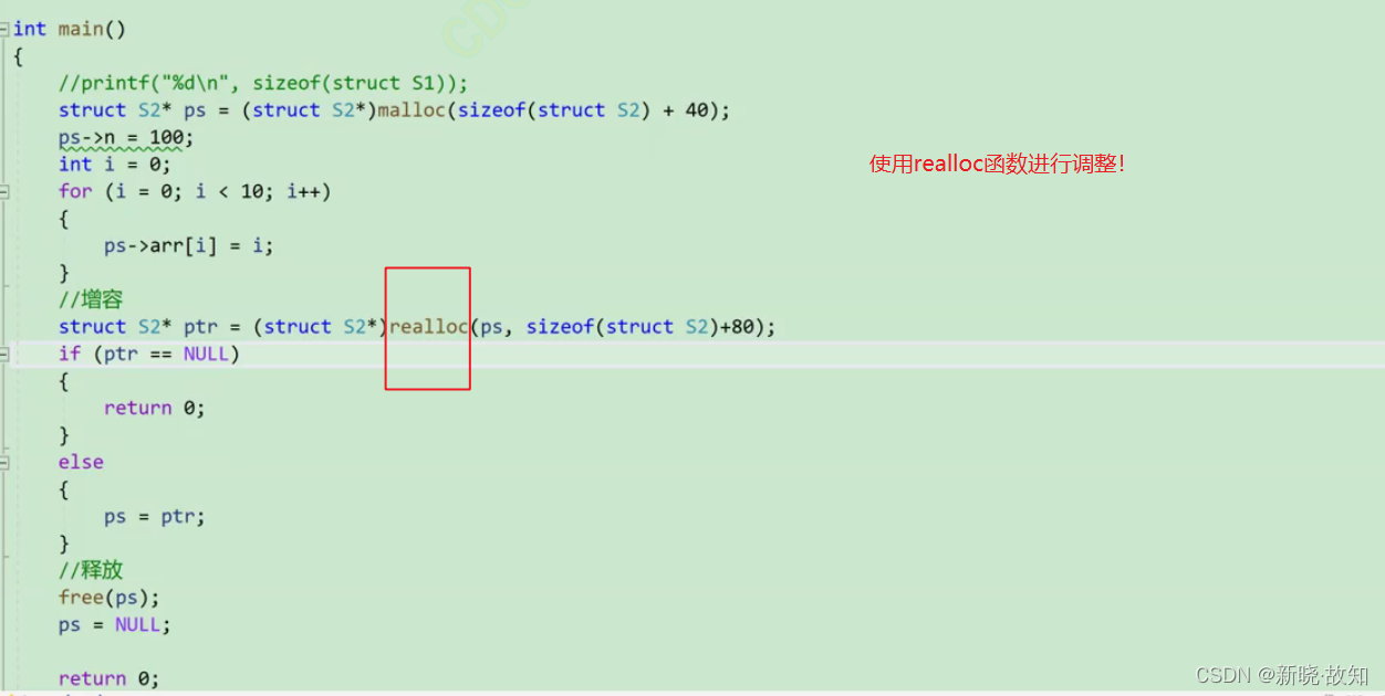 有时会我们发现过去申请的空间太小了,有时候我们又会觉得申请的空间过大了,那为了合理的时 候内存,我们一定会对内存的大小做灵活的调整。那 realloc 函数就可以做到对动态开辟内存大小 的调整。