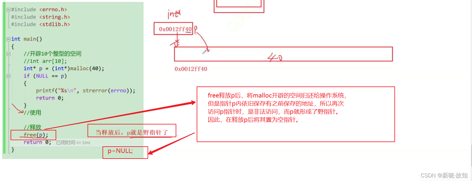 切记: 动态开辟的空间一定要释放,并且正确释放 。