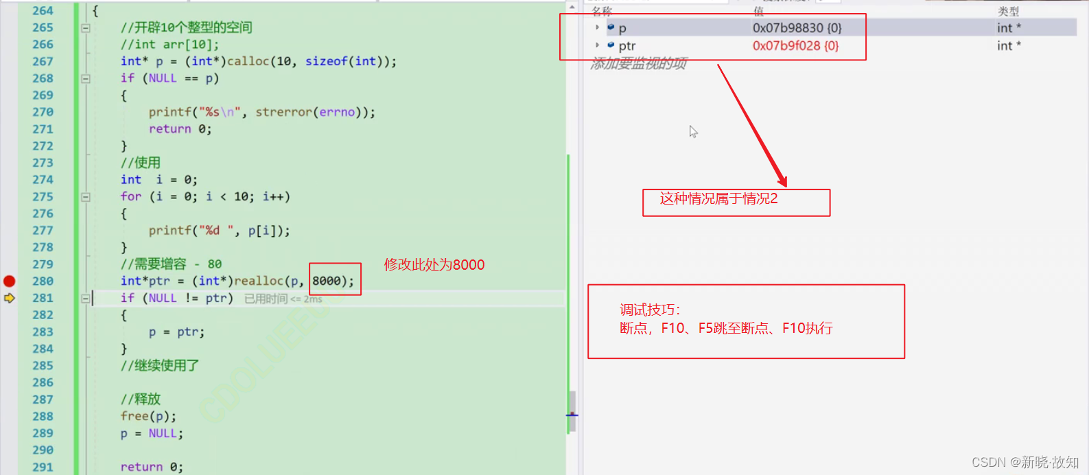由于上述的两种情况,realloc函数的使用就要注意一些。