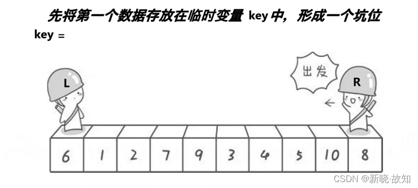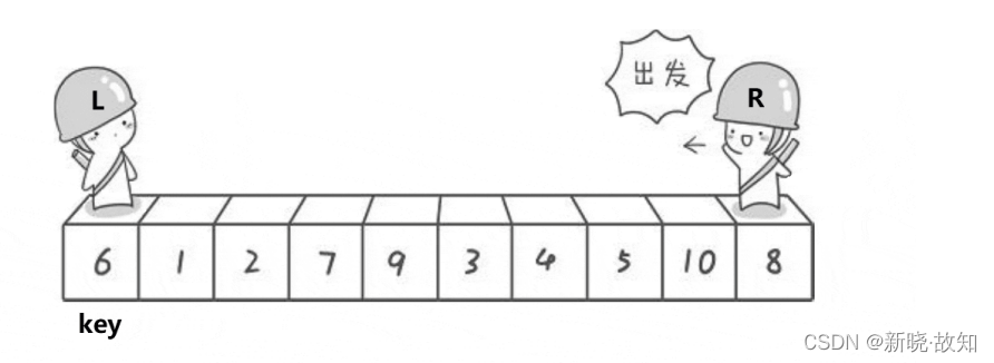上述为快速排序递归实现的主框架,发现与二叉树前序遍历规则非常像,同学们在写递归框架时可想想二叉树前序遍历规则即可快速写出来,后序只需分析如何按照基准值来对区间中数据进行划分的方式即可。