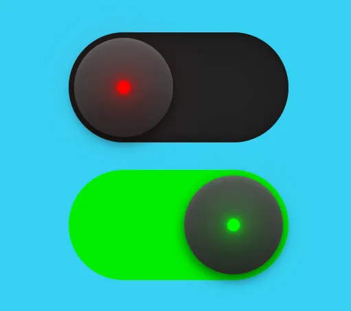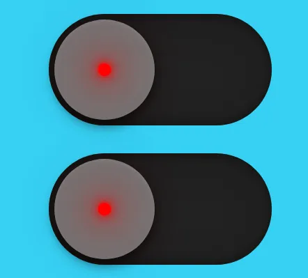 添加按钮中间的开关指示灯效果:居中的小圆点;背景色以及向外模糊的多层阴影。