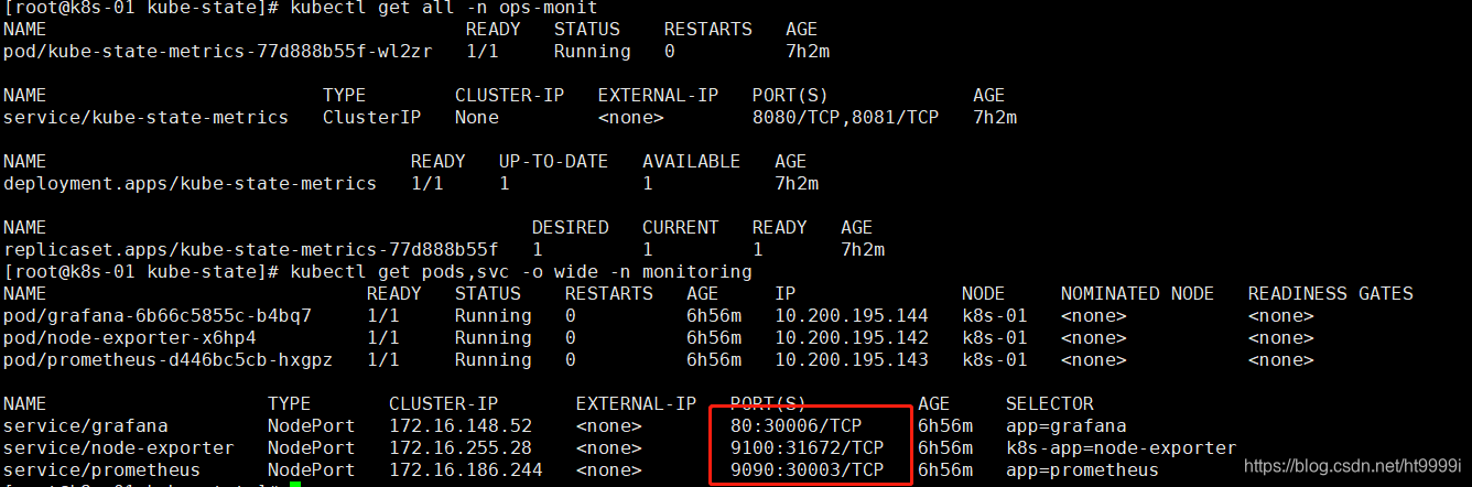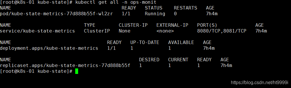 kubectl get all -n ops-monit ##查看kube-state-metrics服务
