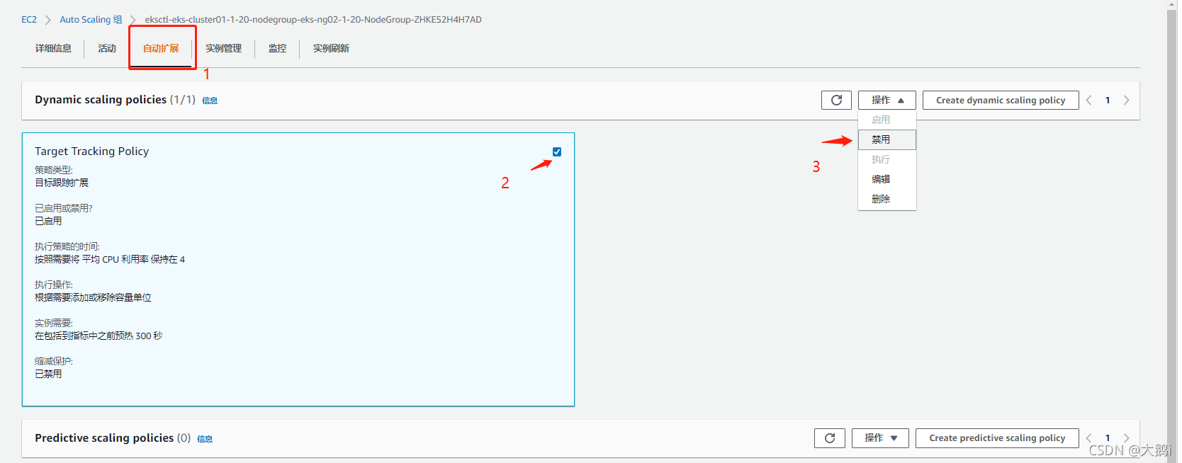 由于配置了不缩减机制 所以需要运维成员在下线的过渡期驱逐新node,恢复到最开始的4台