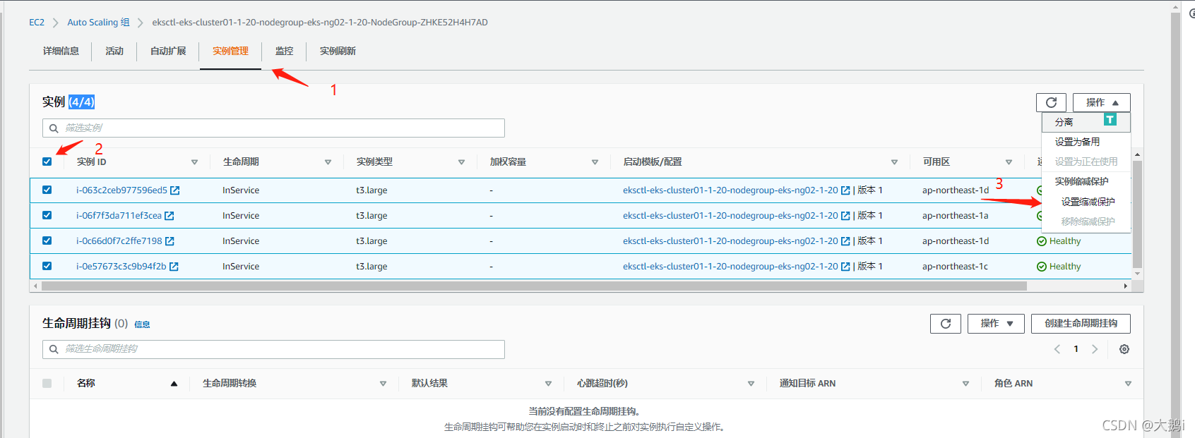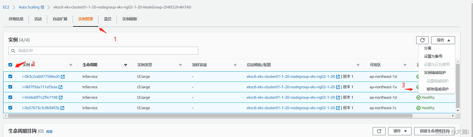 ASG功能强大,能够通过web页面管理你的节点组,数量:min,max 删除保护,扩容机制等等