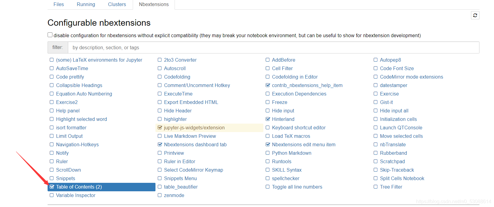 点击下载好的nbextensions,勾选Table of Conten