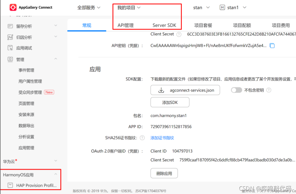 建立完成,后在AppGallery Connect中创建项目和应用。