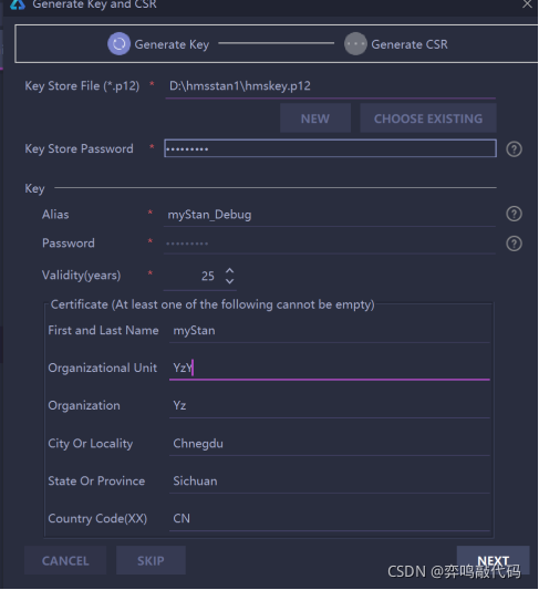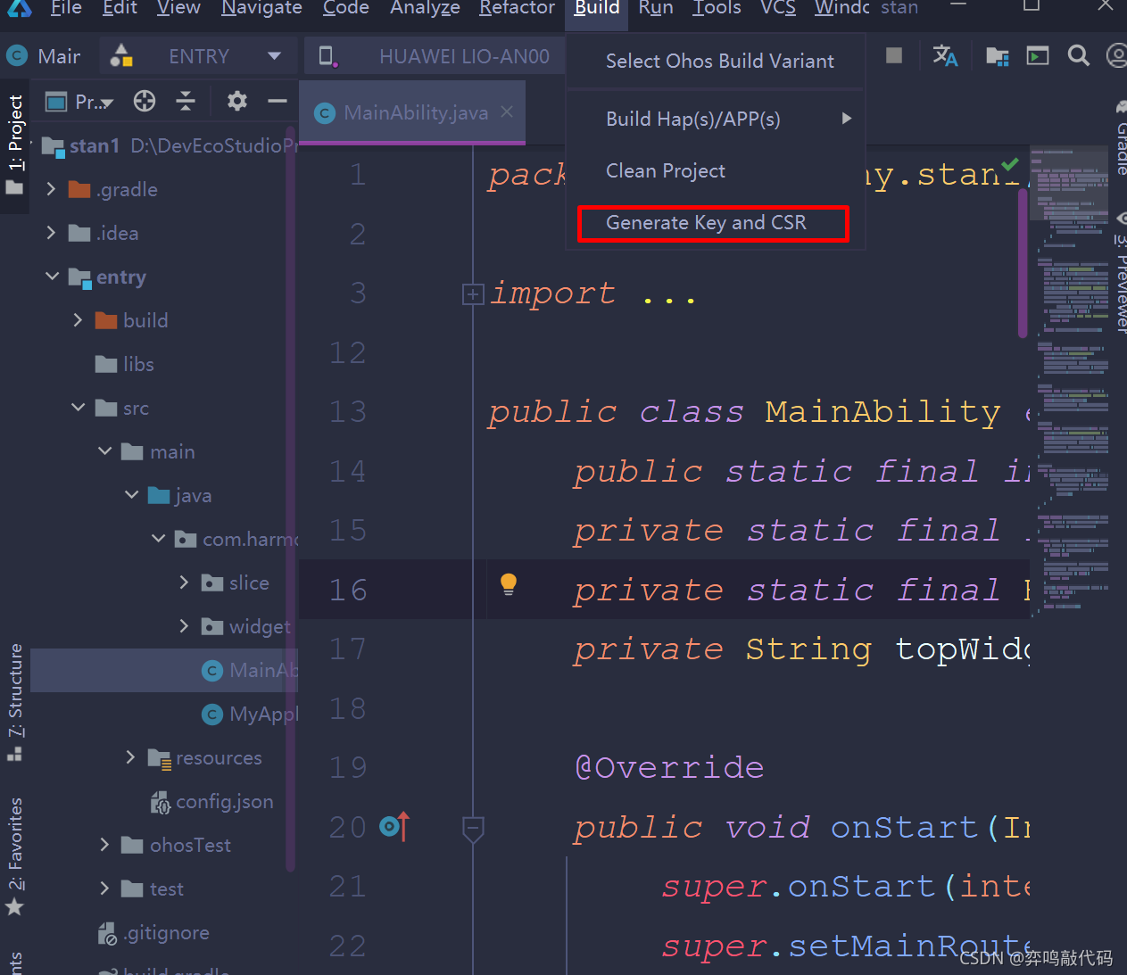 点击工具栏上面的Build,然后选择Geberate Key and CSR。