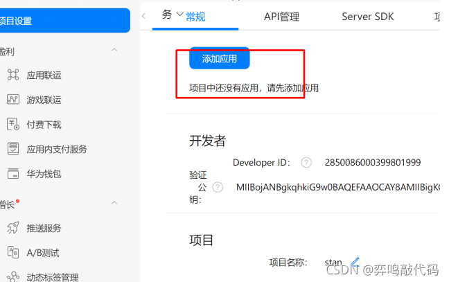 到我的项目,添加项目,并且添加应用,项目名就随意了