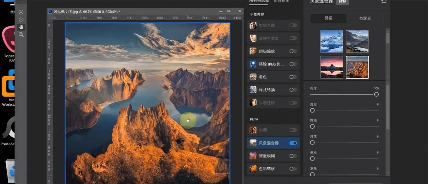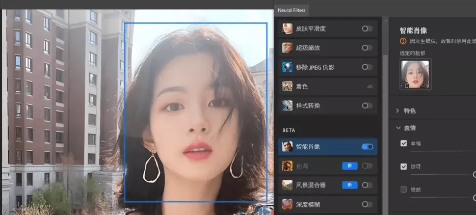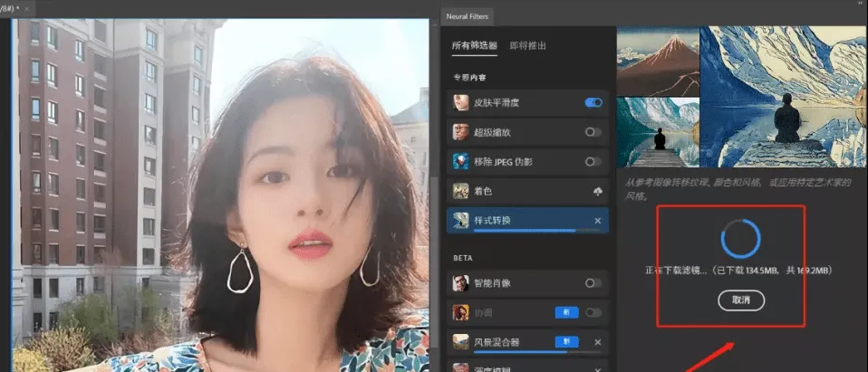 使用新版神经滤镜后无需下载提示,滤镜可用: