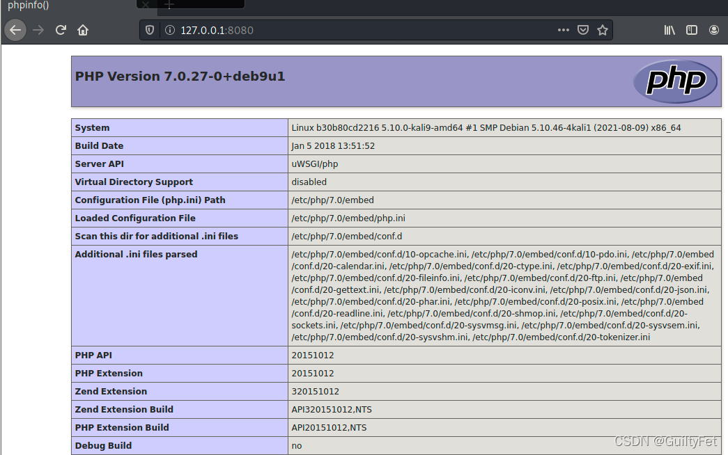 运行完成后,访问http://your-ip:8080/即可看到phpinfo信息,说明uwsgi-php服务器已成功运行。