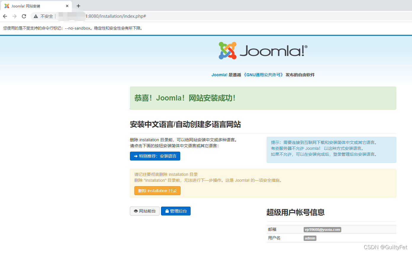 (root💀guiltyfet)-[/home/guiltyfet/vulhub/joomla] └─# cd CVE-2017-8917 ┌──(root💀guiltyfet)-[/home/guiltyfet/vulhub/joomla/CVE-2017-8917] └─# docker-compose up -d Creating network "cve-2017-8917_default" with the default driver