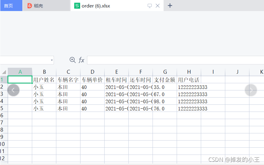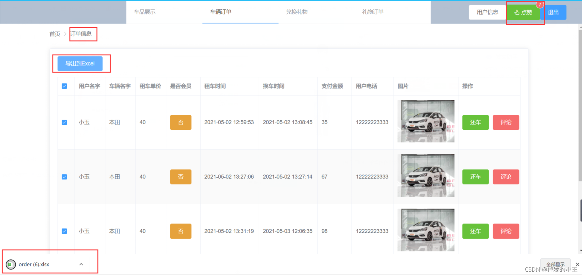 订单导出Excel界面: