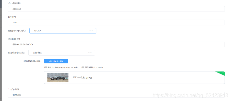 车辆出租展示界面: