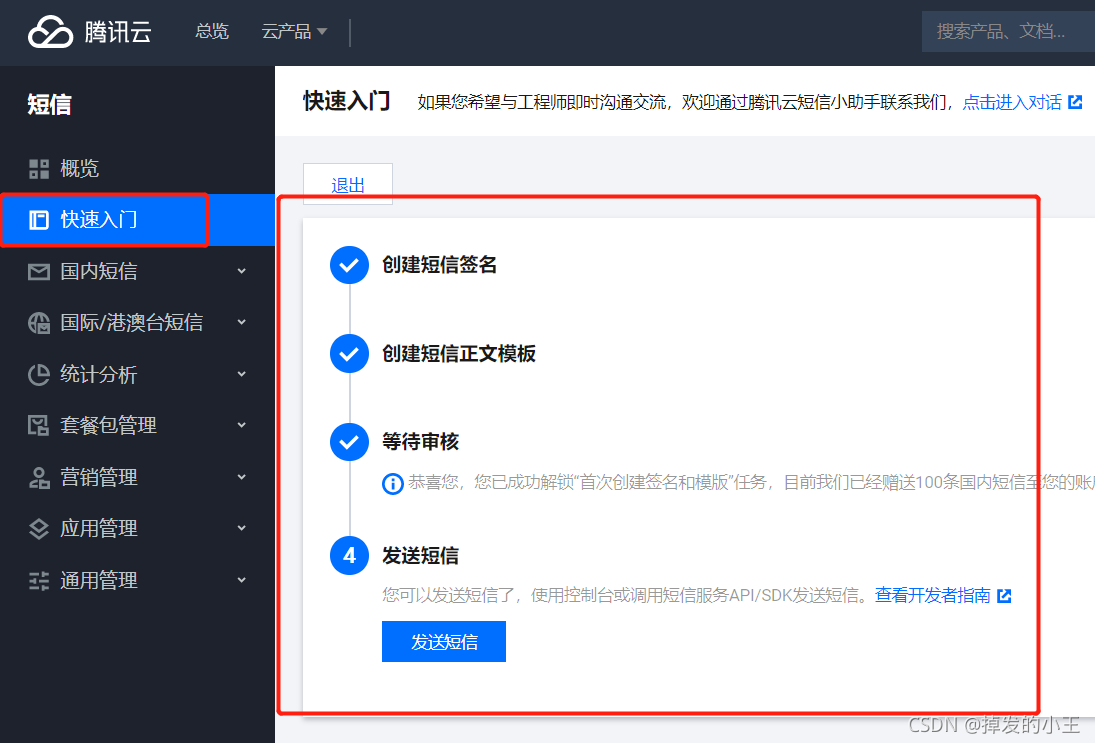 小编这里把网站地址给大家 —>腾讯云短信控制台